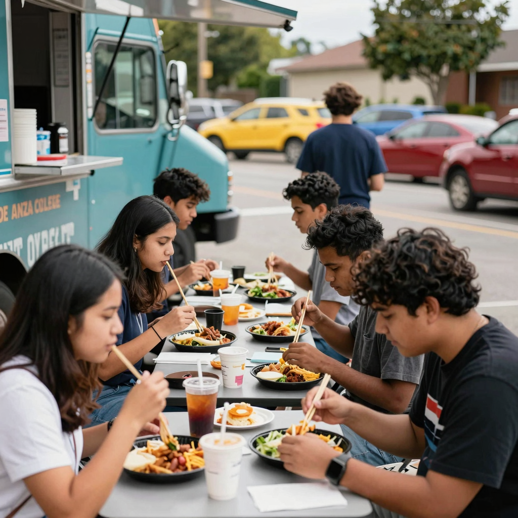 Explore De Anza College’s vibrant food truck paradise, where culture meets cuisine in a mouthwatering mix of flavors!